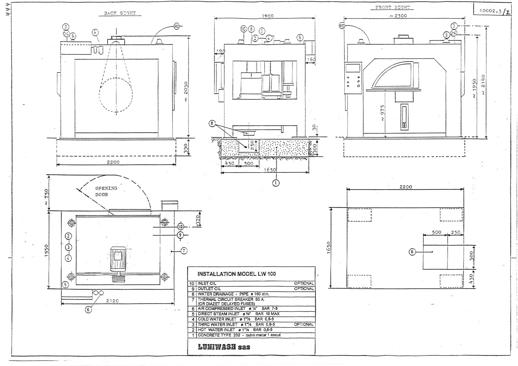 | • Παροχή ατμού: | Πνευματική βαλβίδα 3/4″, πίεσης 1 – 10 Bar, για τη θέρμανση του νερού πλύσης. |