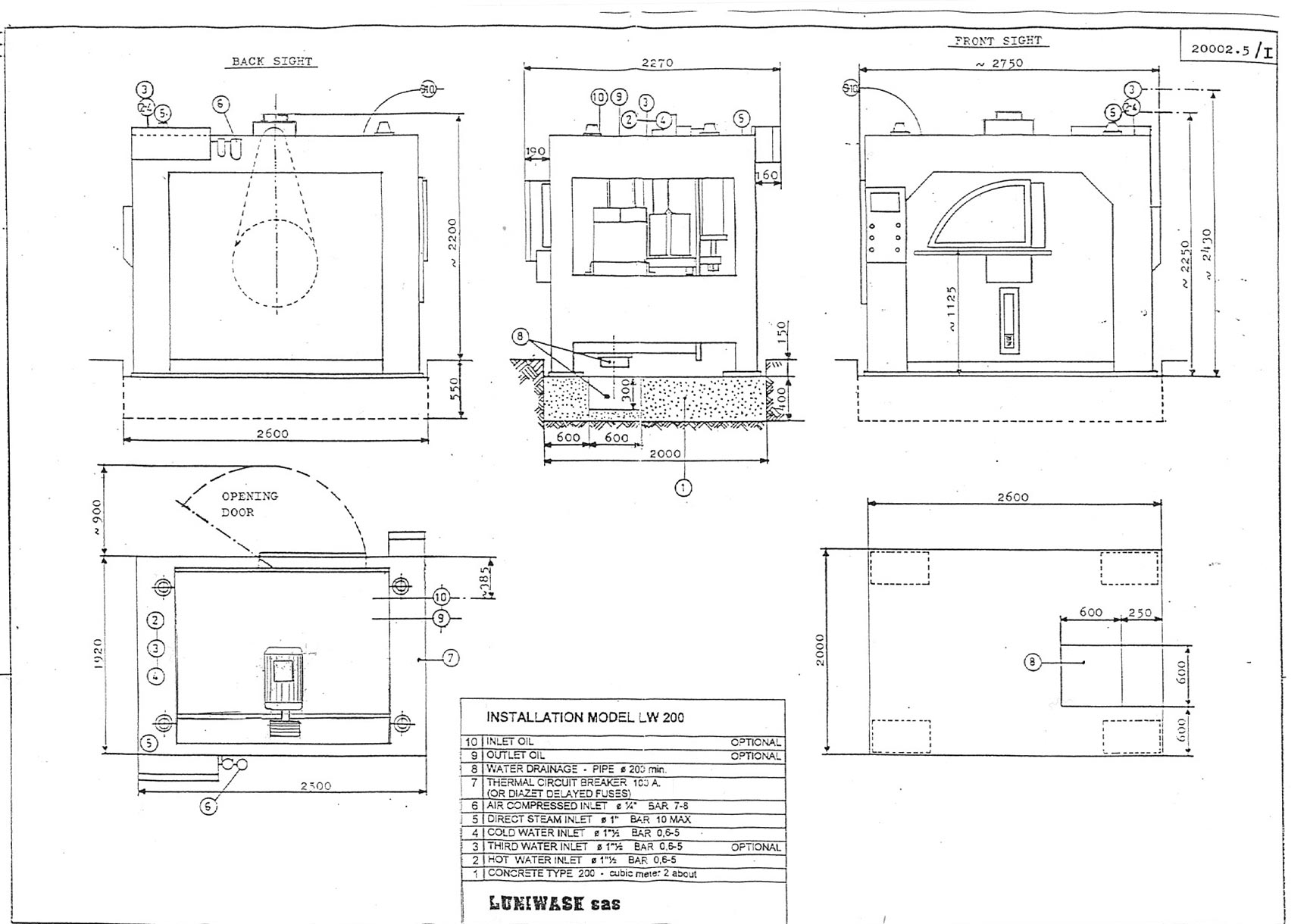 | • Steam Inlet: | 1″ pneumatic valve, pressure 1 – 10 Bar, to heat the washing bath. |